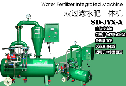 雙過濾水肥一體機,將離心過濾和網式過濾與施肥動力系統相結合,適用于井水作為水源的灌溉系統,可管理中小型種植園區。